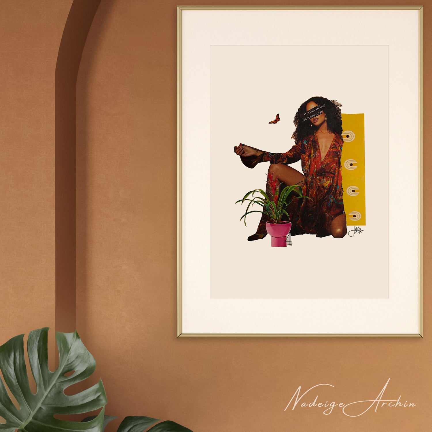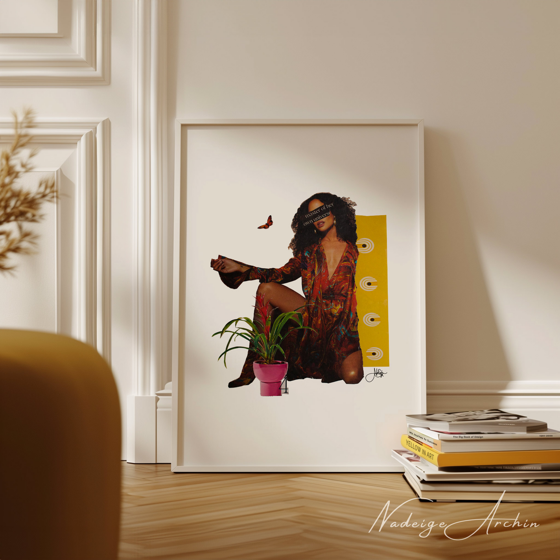 Discover Master Her Universe, a collage celebrating feminine empowerment, nature, and self-love